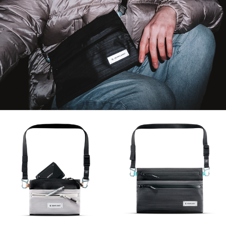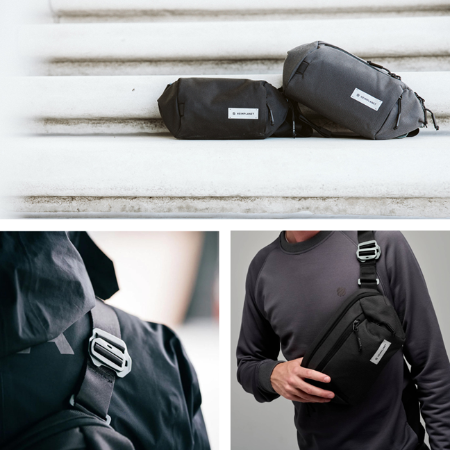 + Hardware aus robustem Aluminium - z.B. der Aluminium Belt Buckle [nur bei der Sling Pocket XL]