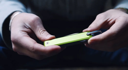 Das Ellis verfügt über ein Lockback-Design, so dass Du mit einem Werkzeug, das sich verriegeln lässt, echte Arbeit verrichten kannst; keine kaputten Knöchel mehr beim Drehen von Schrauben. Zu den weiteren Merkmalen gehören eine teilweise gezahnte Drop-Point-Klinge, eine Kombination aus Flaschenöffner und Schraubendreher, unser "All Things"® Schaber und Stemmeisen sowie eine Schlaufe zum Befestigen an Schlüsseln, Karabiner oder Rucksack.
